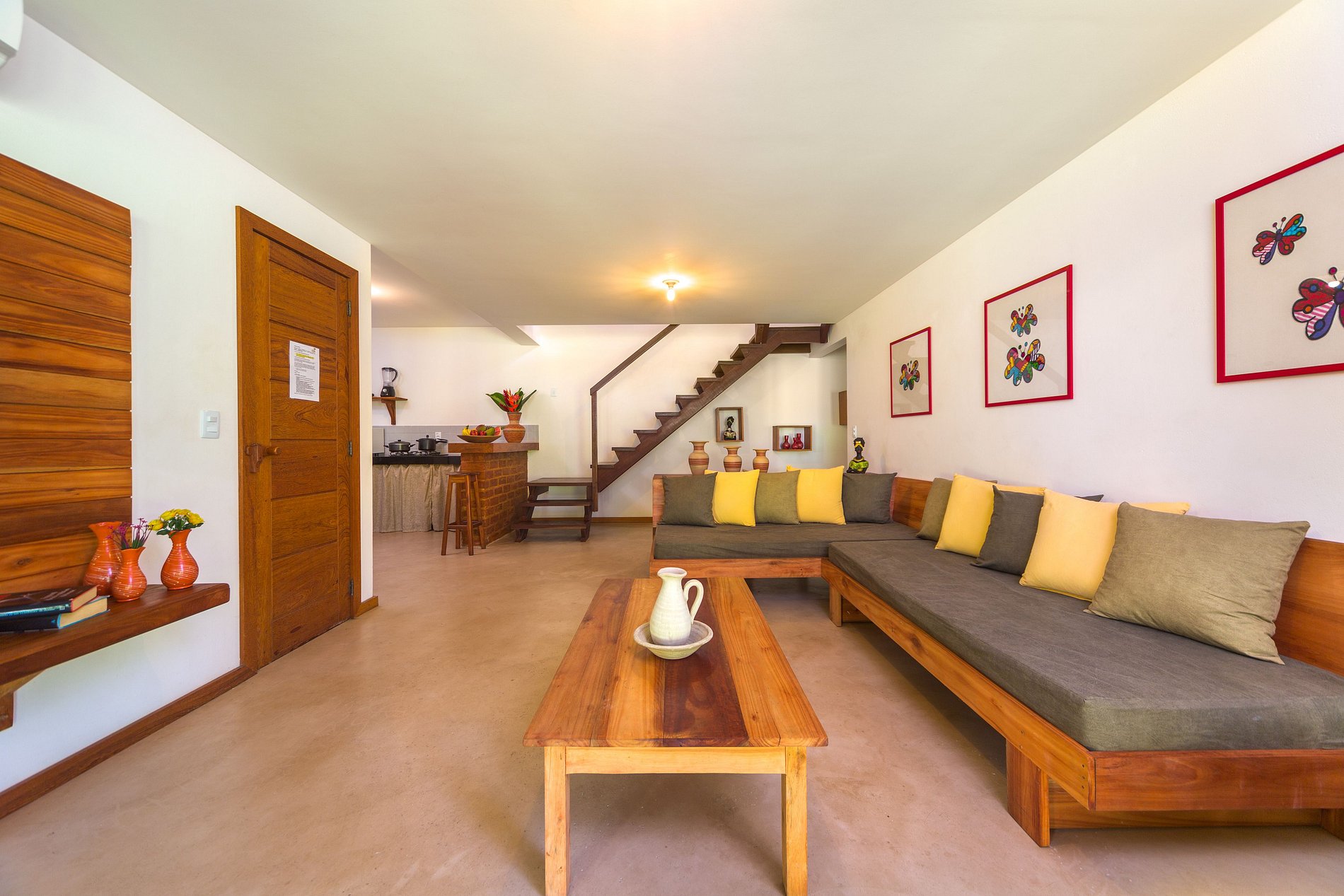 Our accommodations are all within a wonderful luxury residential condominium, considered the most beautiful of Costa do Descobrimento, totally immersed in tropical nature, preserving the beautiful Atlantic Forest. In this way we can wake up with the songs of birds, eat fruit from trees, drink fresh coconut water and even observe squirrels and monkeys playing in the trees, not to mention that all this is in the best location in Arraial d 'Ajuda. The condominium has a view of the ocean where we can admire the moonrise and one of the most stunning sunset of the coast. The most charming street in Brazil, Rua do Mucugê, is 100 meters away, and it is only a few steps to the paradisiacal beaches of southern Bahia.