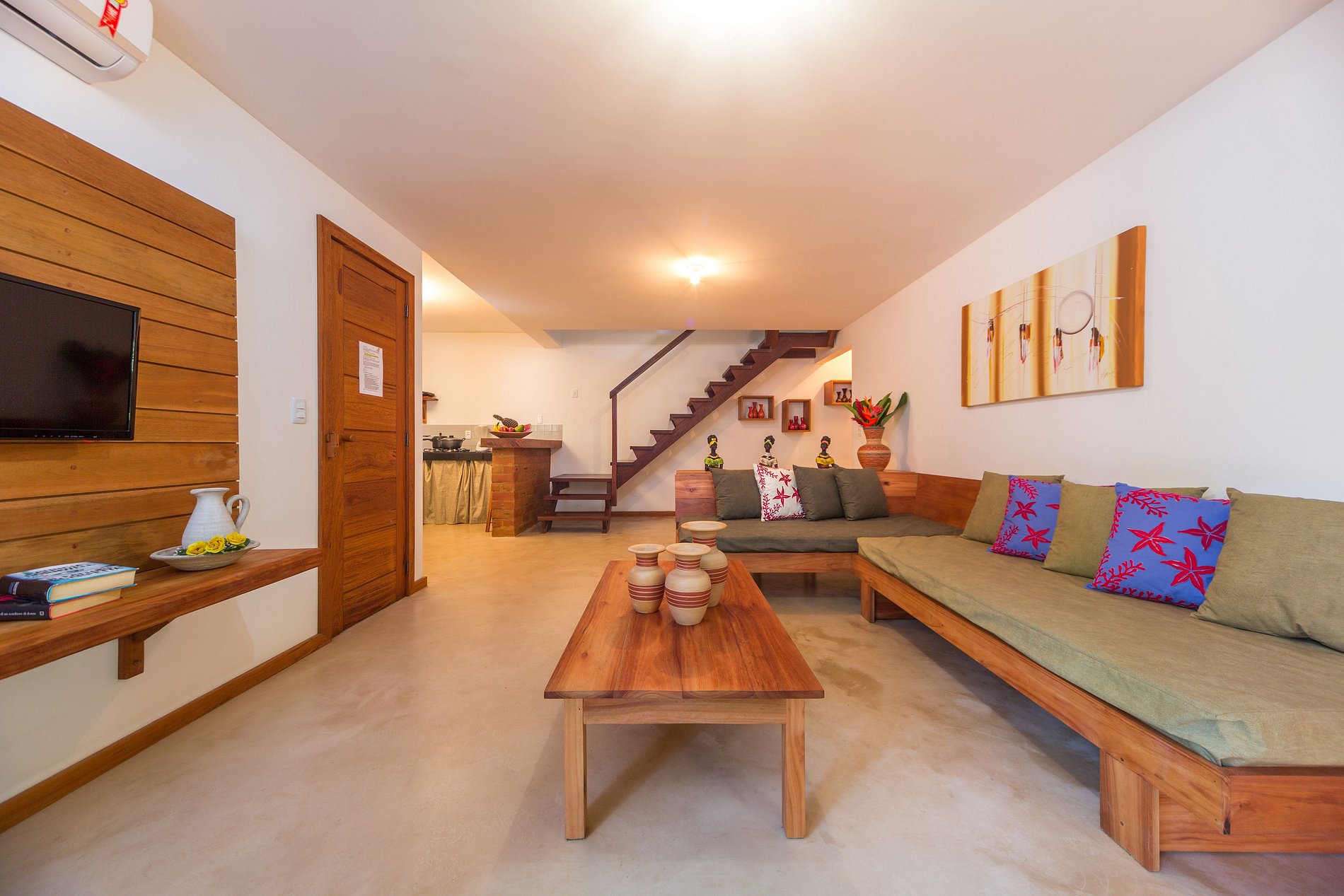Our accommodations are all within a wonderful luxury residential condominium, considered the most beautiful of Costa do Descobrimento, totally immersed in tropical nature, preserving the beautiful Atlantic Forest. In this way we can wake up with the songs of birds, eat fruit from trees, drink fresh coconut water and even observe squirrels and monkeys playing in the trees, not to mention that all this is in the best location in Arraial d 'Ajuda. The condominium has a view of the ocean where we can admire the moonrise and one of the most stunning sunset of the coast. The most charming street in Brazil, Rua do Mucugê, is 100 meters away, and it is only a few steps to the paradisiacal beaches of southern Bahia.