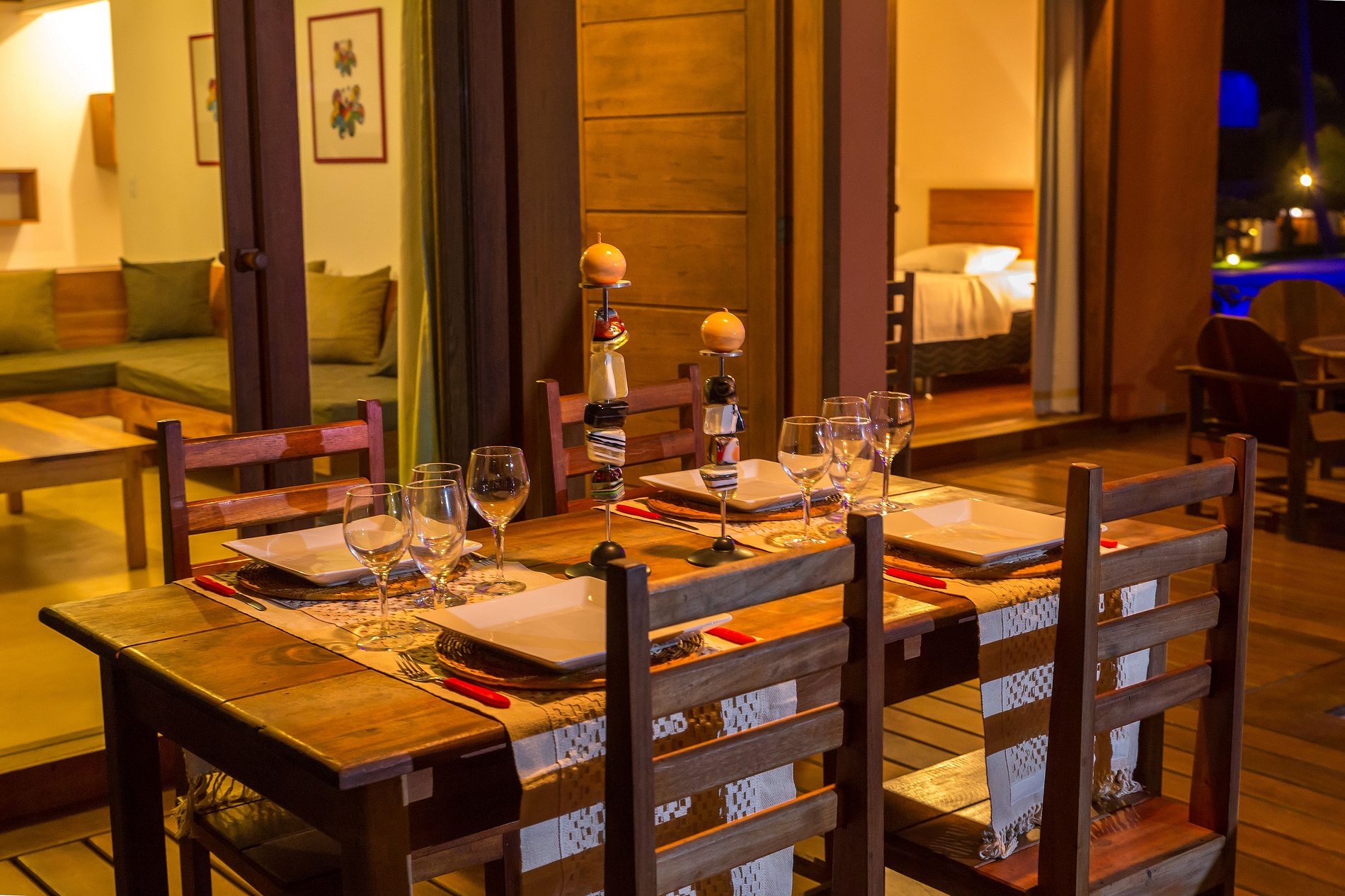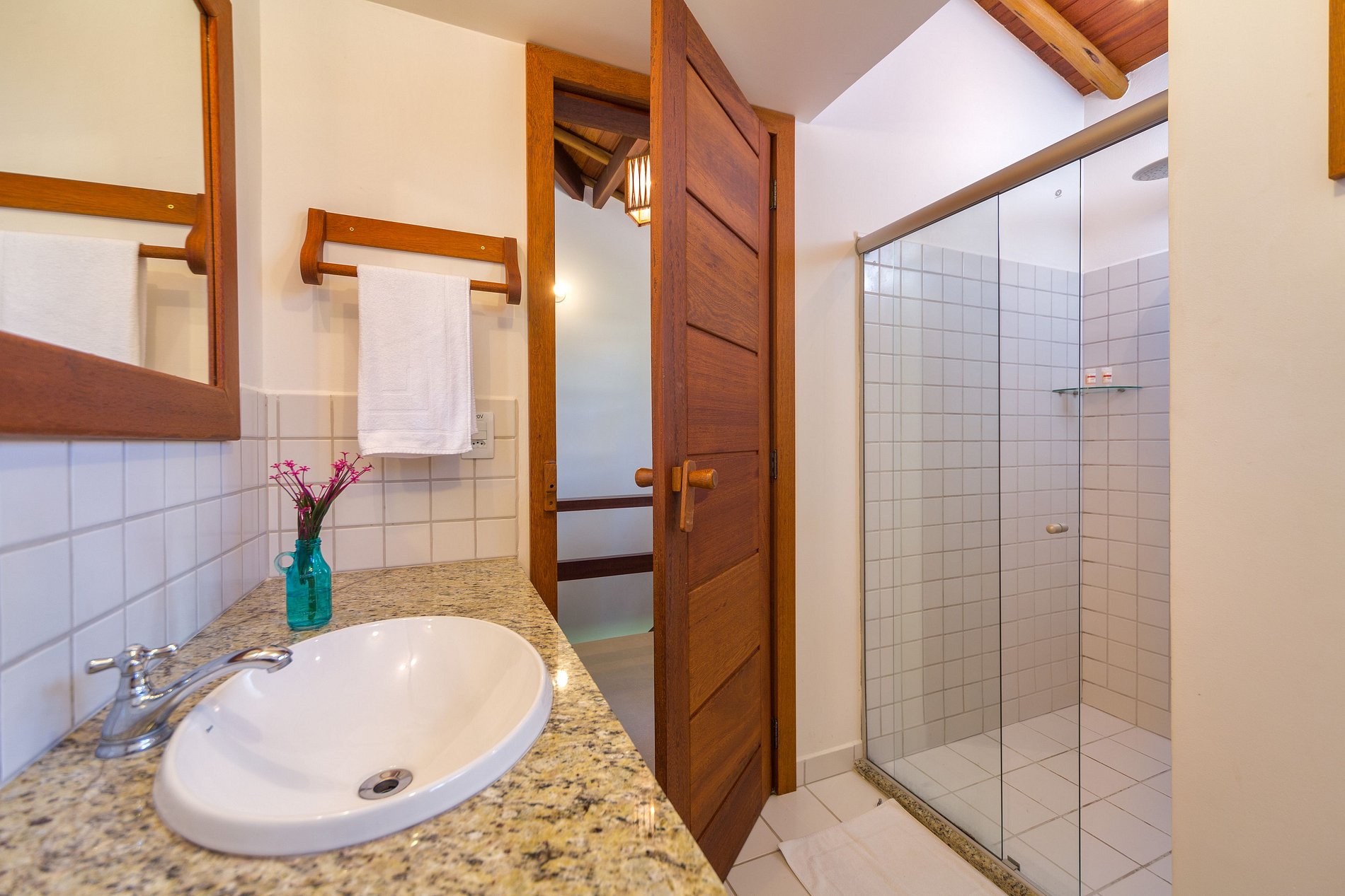 Our accommodations are all within a wonderful luxury residential condominium, considered the most beautiful of Costa do Descobrimento, totally immersed in tropical nature, preserving the beautiful Atlantic Forest. In this way we can wake up with the songs of birds, eat fruit from trees, drink fresh coconut water and even observe squirrels and monkeys playing in the trees, not to mention that all this is in the best location in Arraial d 'Ajuda. The condominium has a view of the ocean where we can admire the moonrise and one of the most stunning sunset of the coast. The most charming street in Brazil, Rua do Mucugê, is 100 meters away, and it is only a few steps to the paradisiacal beaches of southern Bahia.