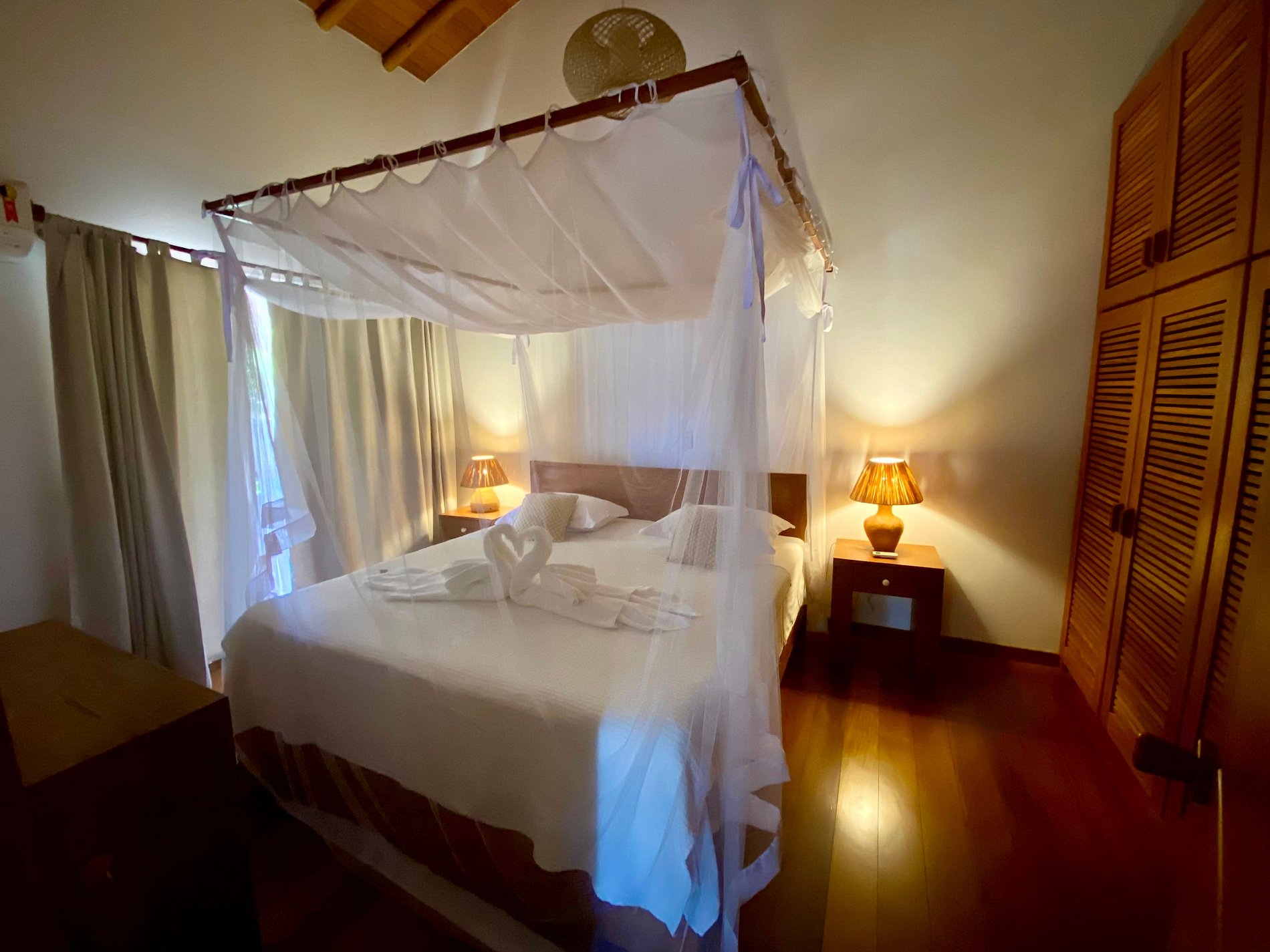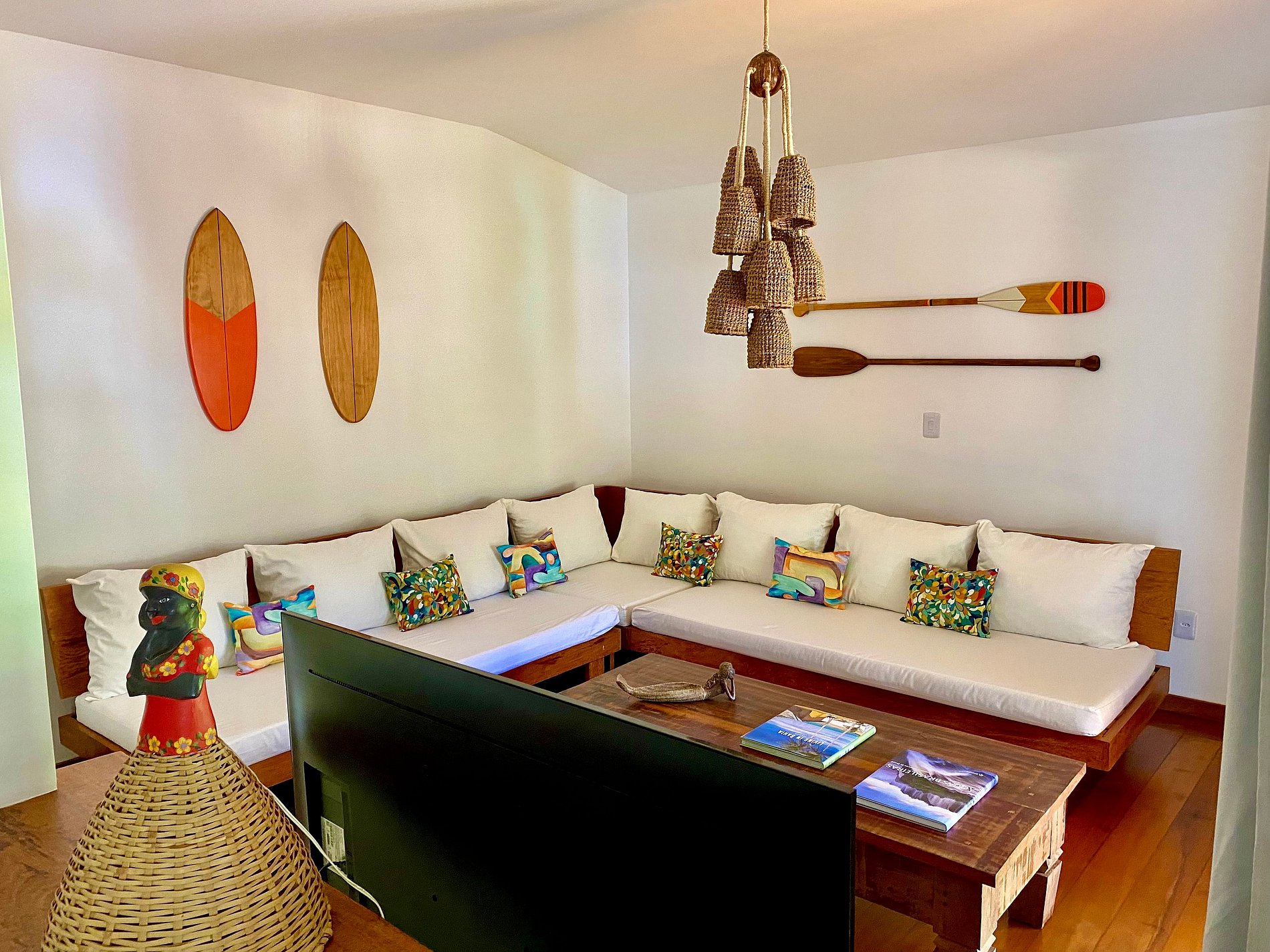 Our accommodations are all within a wonderful luxury residential condominium, considered the most beautiful of Costa do Descobrimento, totally immersed in tropical nature, preserving the beautiful Atlantic Forest. In this way we can wake up with the songs of birds, eat fruit from trees, drink fresh coconut water and even observe squirrels and monkeys playing in the trees, not to mention that all this is in the best location in Arraial d 'Ajuda. The condominium has a view of the ocean where we can admire the moonrise and one of the most stunning sunset of the coast. The most charming street in Brazil, Rua do Mucugê, is 100 meters away, and it is only a few steps to the paradisiacal beaches of southern Bahia.